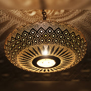 Each lamp is meticulously handcrafted by skilled Moroccan artisans using time-honored techniques passed down through generations. Its wide dome silhouette is decorated with intricate geometric perforations that create mesmerizing shadows across your ceiling and walls when illuminated.