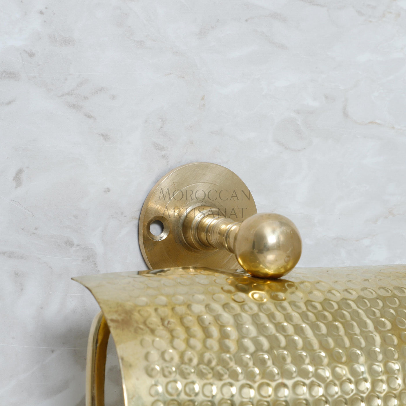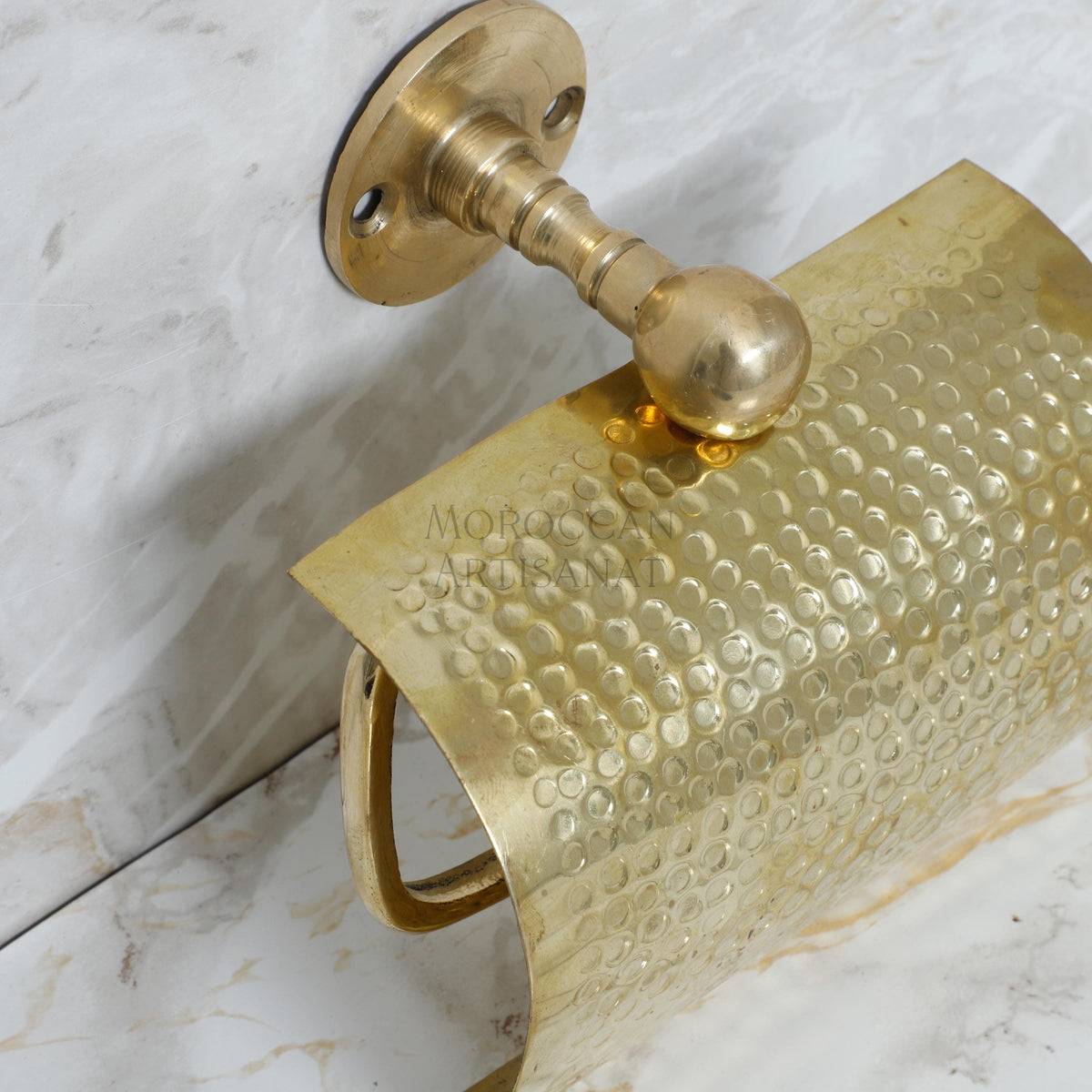 Add a touch of Moroccan craftsmanship and luxury to your bathroom with this Hammered Brass Toilet Paper Holder.