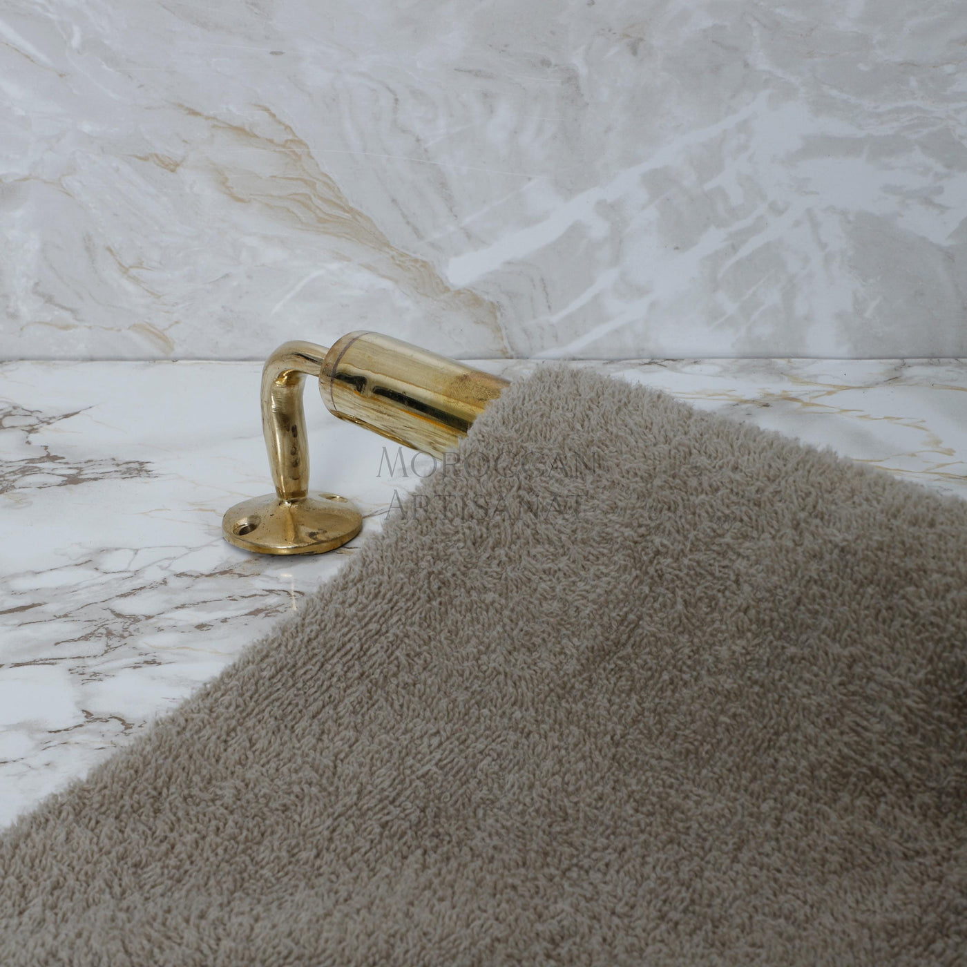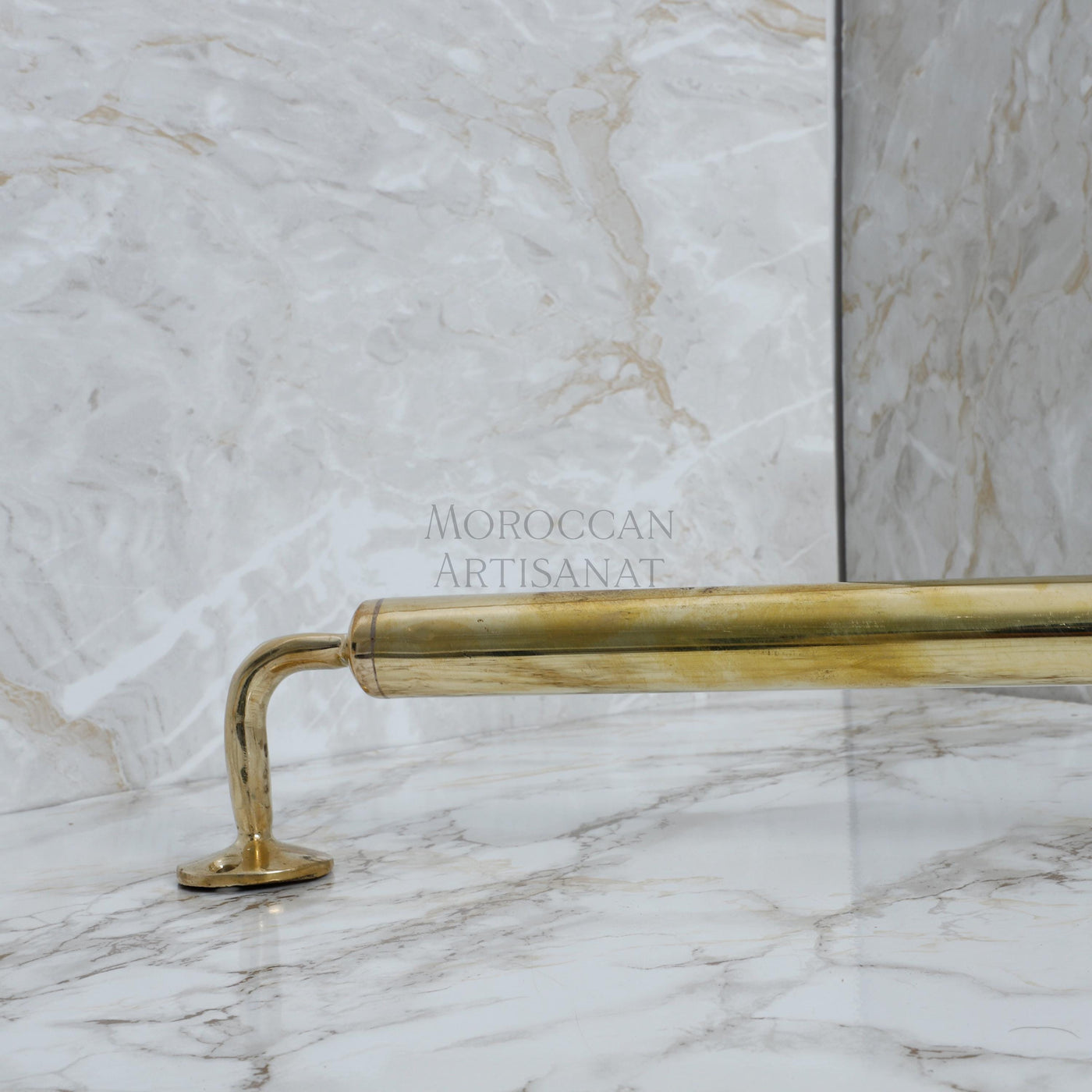 Add timeless elegance to your bathroom or kitchen with this handmade brass towel bar. Crafted from solid unlacquered brass, it blends durability with artisan charm. At 16 inches long, it’s the perfect size for holding hand towels, bath towels, or kitchen linens.