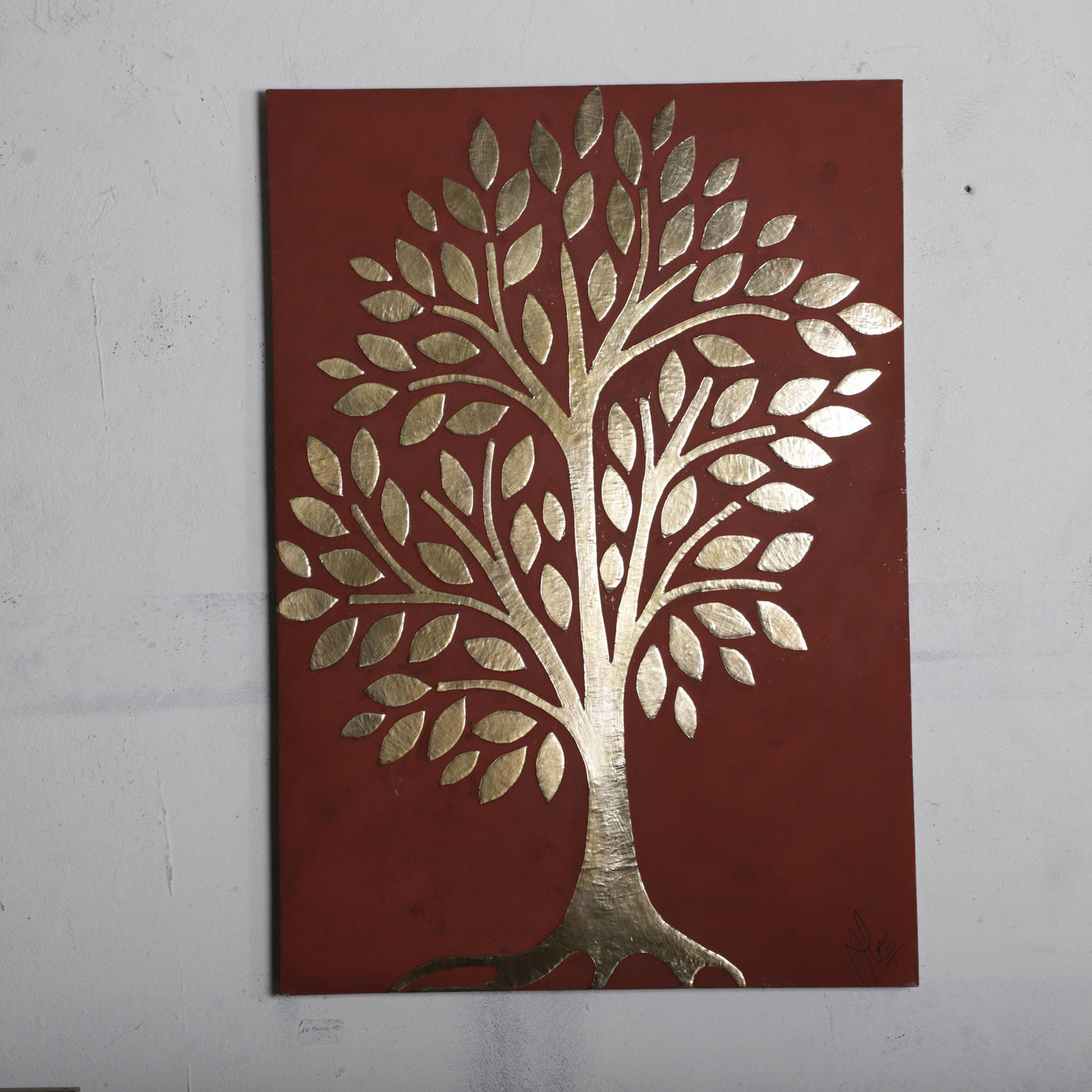 Each Tree Artwork is made using traditional repoussé techniques, where brass is hand-hammered to form an intricate tree silhouette. Set against a painted wooden panel, the metallic shine contrasts beautifully with the matte earthy tones. This blend of old-world craftsmanship and modern design makes it perfect for spiritual, botanical, or bohemian interiors.
