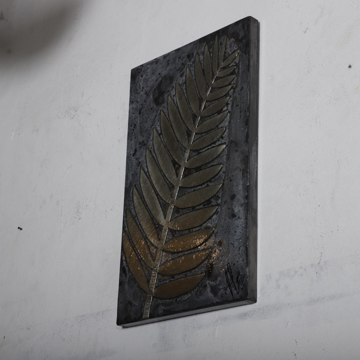 Bring natural beauty into your home with this handmade Wall Art. Designed by Moroccan artisans, it features a brass fern leaf set against a dark oxidized panel. The metallic sheen contrasts with the matte background, creating a bold yet calming look.