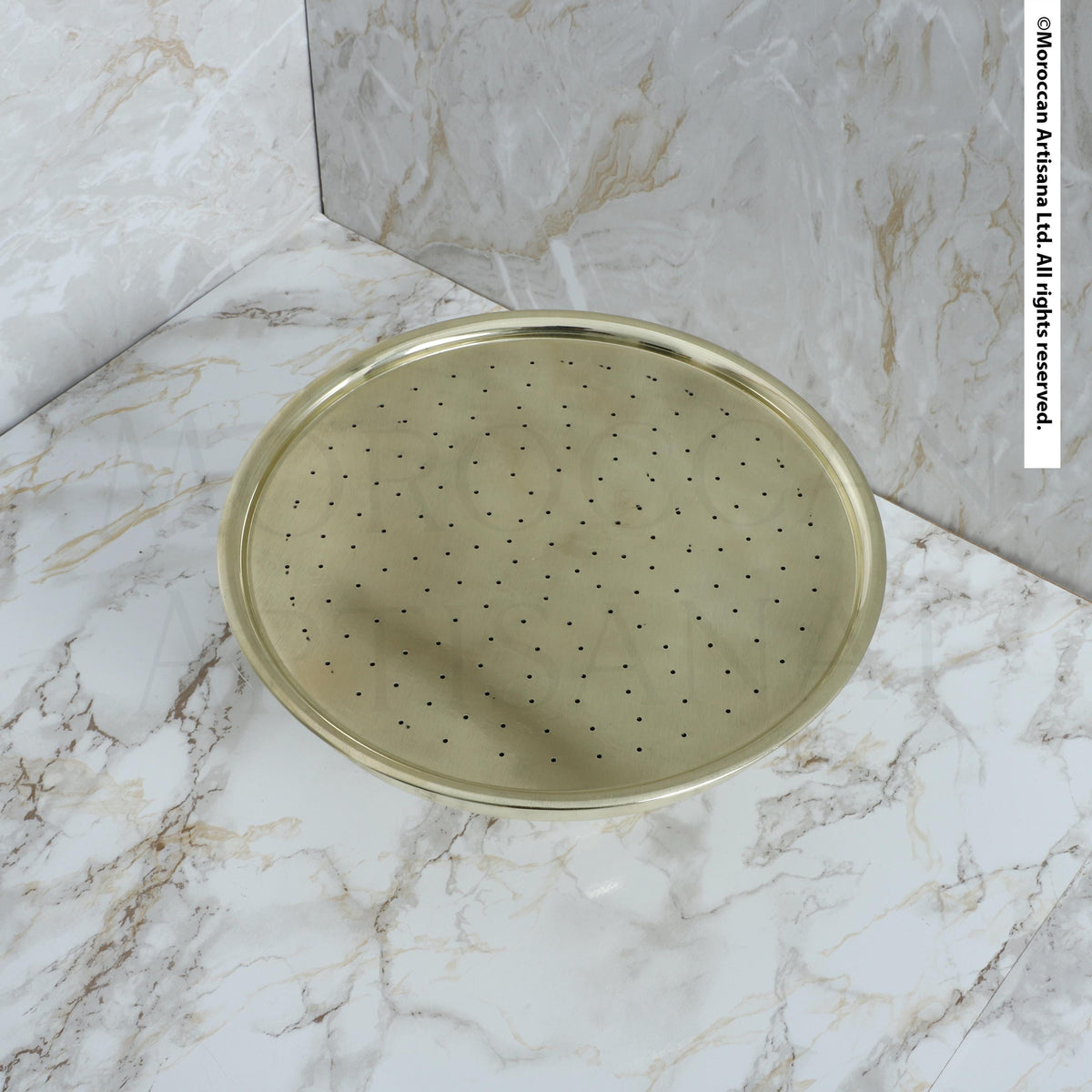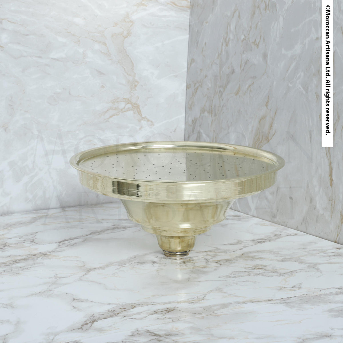 Bring authentic Moroccan craftsmanship into your bathroom with this Rain Shower Head, handmade from solid brass and finished with a naturally polished patina. Each piece is carefully crafted by skilled artisans, ensuring every shower head is unique in its detail and finish. The wide round design delivers a soothing rainfall effect, transforming daily routines into a spa-like experience.