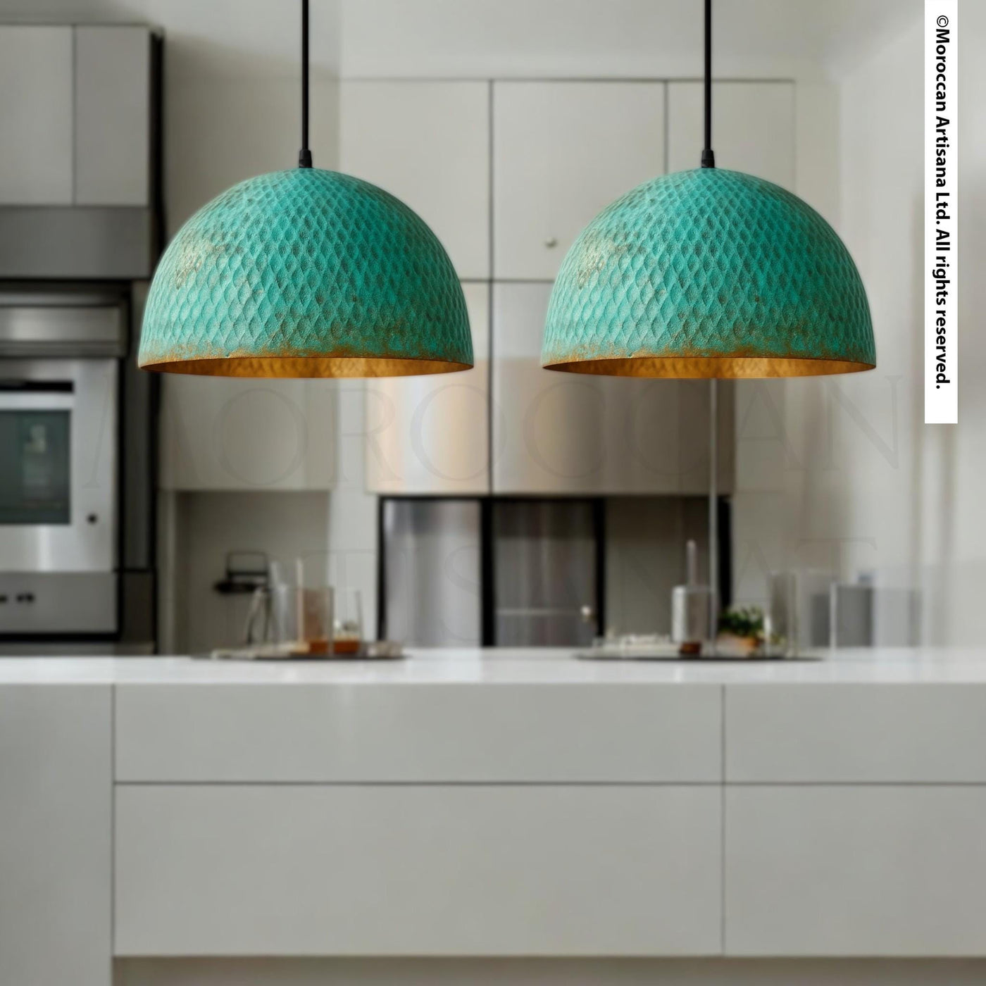 Bring artisan charm and rustic warmth into your home with this Copper Pendant Light, handcrafted from pure copper. Each dome lamp is oxidized to create a natural patina, giving it a unique finish that adds depth and character.