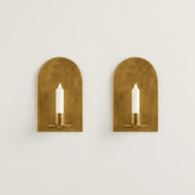 Bring warm, timeless character to your walls with this handmade set of 2 arched brass candle sconces. Each piece is crafted from solid brass and shaped into a smooth, architectural arch that reflects candlelight beautifully. The elegant silhouette and warm golden finish make these sconces a perfect accent for entryways, living rooms, bedrooms, or above a console or fireplace.