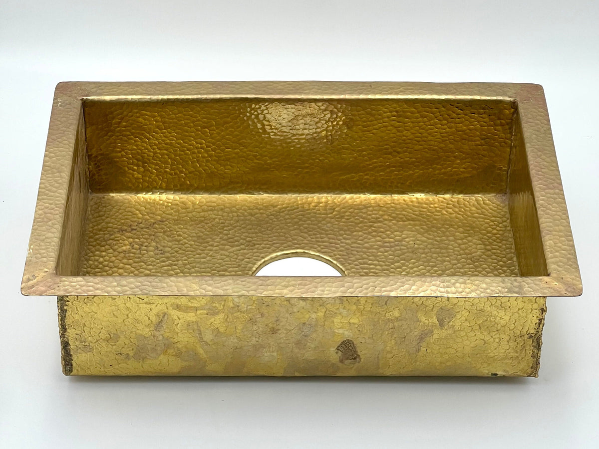Introducing our exquisite Unlacquered Brass Kitchen Island Sink, a stunning addition to elevate your kitchen or bar area. This undermount brass sink is designed with impeccable craftsmanship, featuring a unique hammered finish that adds character and sophistication to your space.